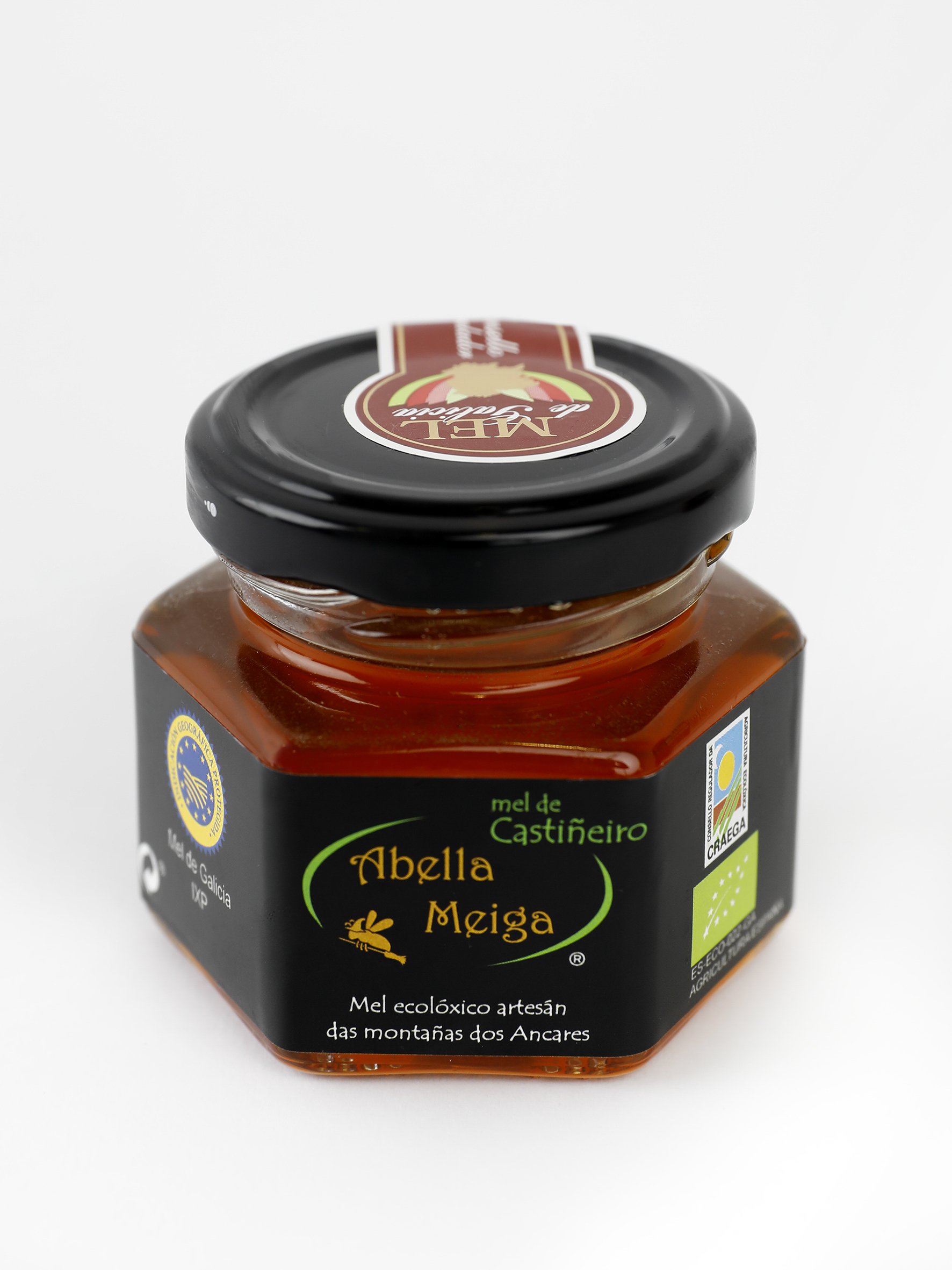 Esta miel de castaño cuenta con más de un 70% de polen de esta variedad. Es de color ambar, tiene un olor floral y un sabor suave y doce.