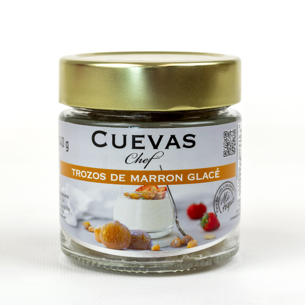 Nuestro producto más célebre, el original, pero ahora en pensado para utilizar como topping, acompañando helado o yugurt, como ingrediente de bizcochos o tartas, o para un dulce picoteo.Un producto natural 100% y una receta maestra perfeccionada a lo largo de nuestros más de 30 años de experiencia. Marron Glacé, el punto de partida perfecto para descubrir los sabores de Cuevas.